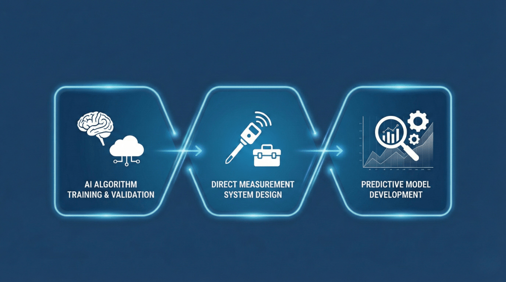 Predictive model development: Continuous AI research to estimate load time series and detect structural anomalies through comprehensive indirect data analysis.